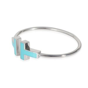 Tiffany T Wire Bracelet With Turquoise, Large Model 18k White Gold