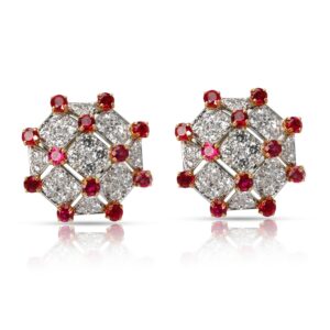 Tiffany & Co. Estate Diamond/Ruby Trellis Earrings, 18KY Gold/Platinum 3.19 Ctw