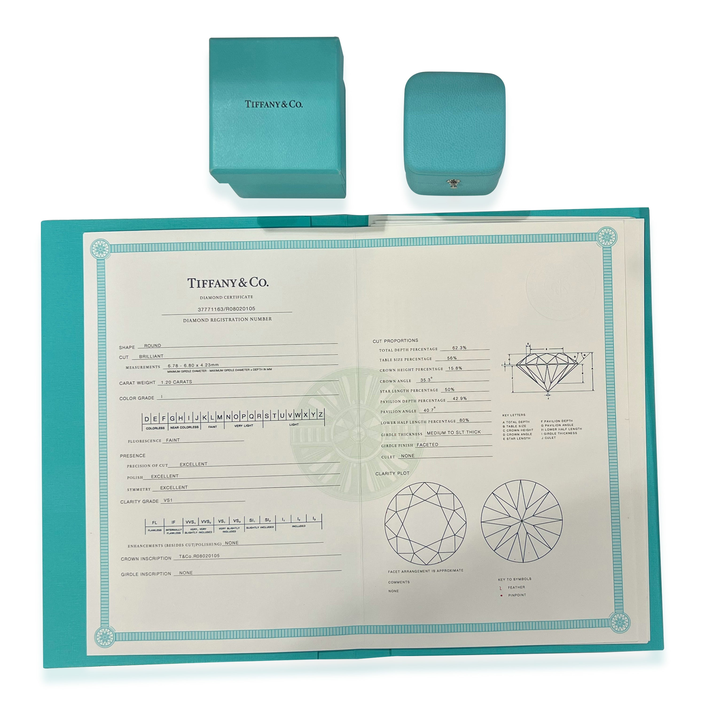 Retails for 16800 USD. In excellent condition and recently polished. Ring size is 5.75.Comes with Box, Appraisal and Tiffany Diamond Certificate. Comes with the original box and papers. (Out of stock)
