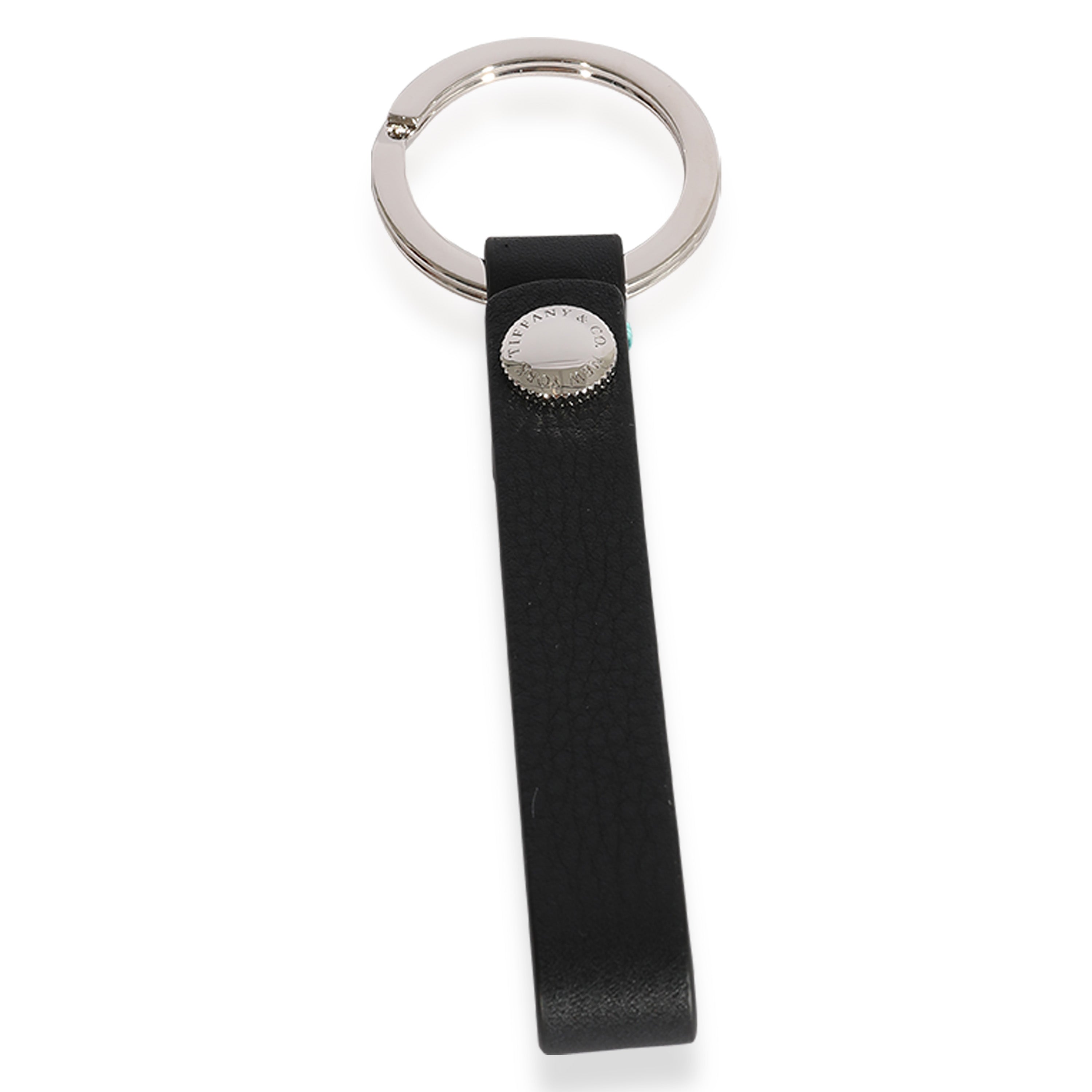Tiffany & Co. Black & Teal Leather Snap Loop Keychain