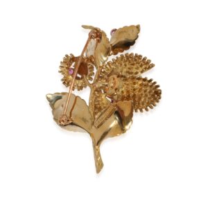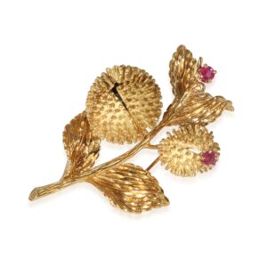 Tiffany & Co. Vintage Diamond Ruby Brooch in 18k Yellow Gold F-G VS 0.17 CTW