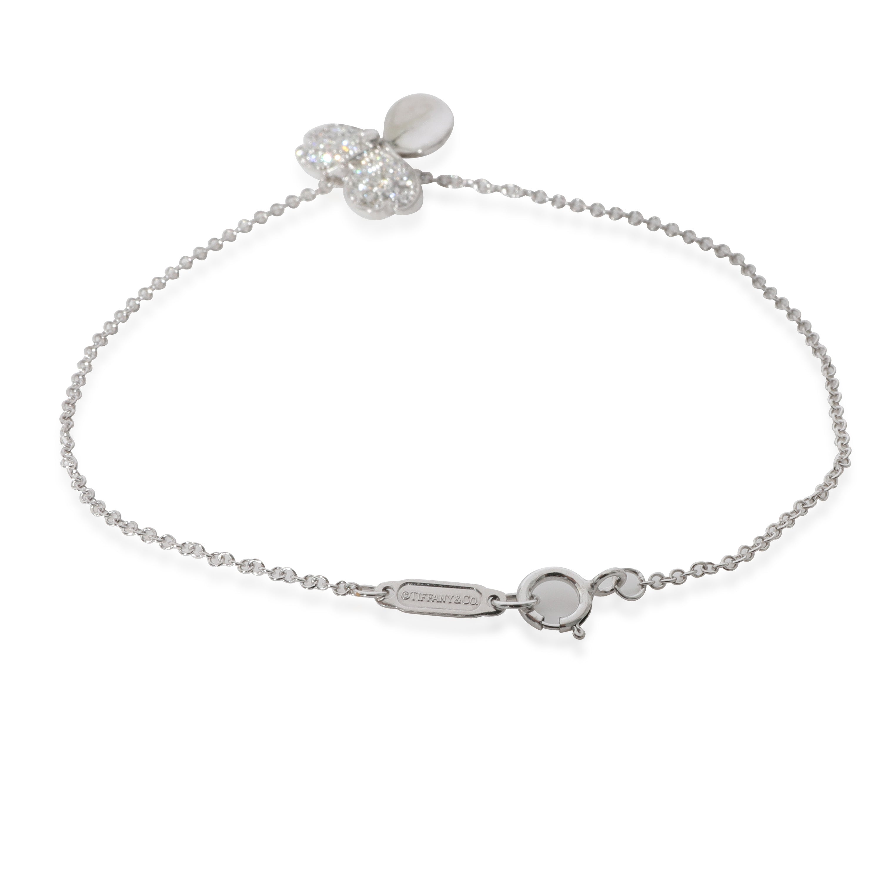 Delicate yet modern, the Tiffany & Co. Paper Flowers collection offers an abstract take on floral imagery. The pieces in this edit are detailed with white diamonds. Retails for 2700 USD. In excellent condition and recently polished. 6.5 inches in length. Comes with Box;Pouch; Comes with the original box. (Out of stock)