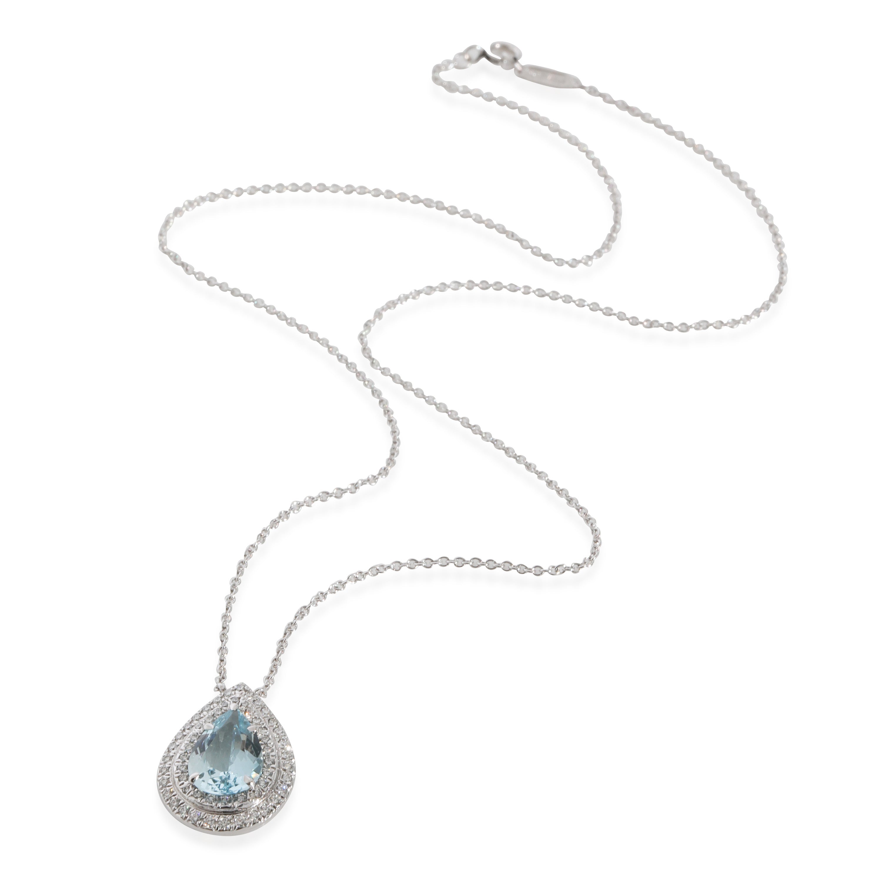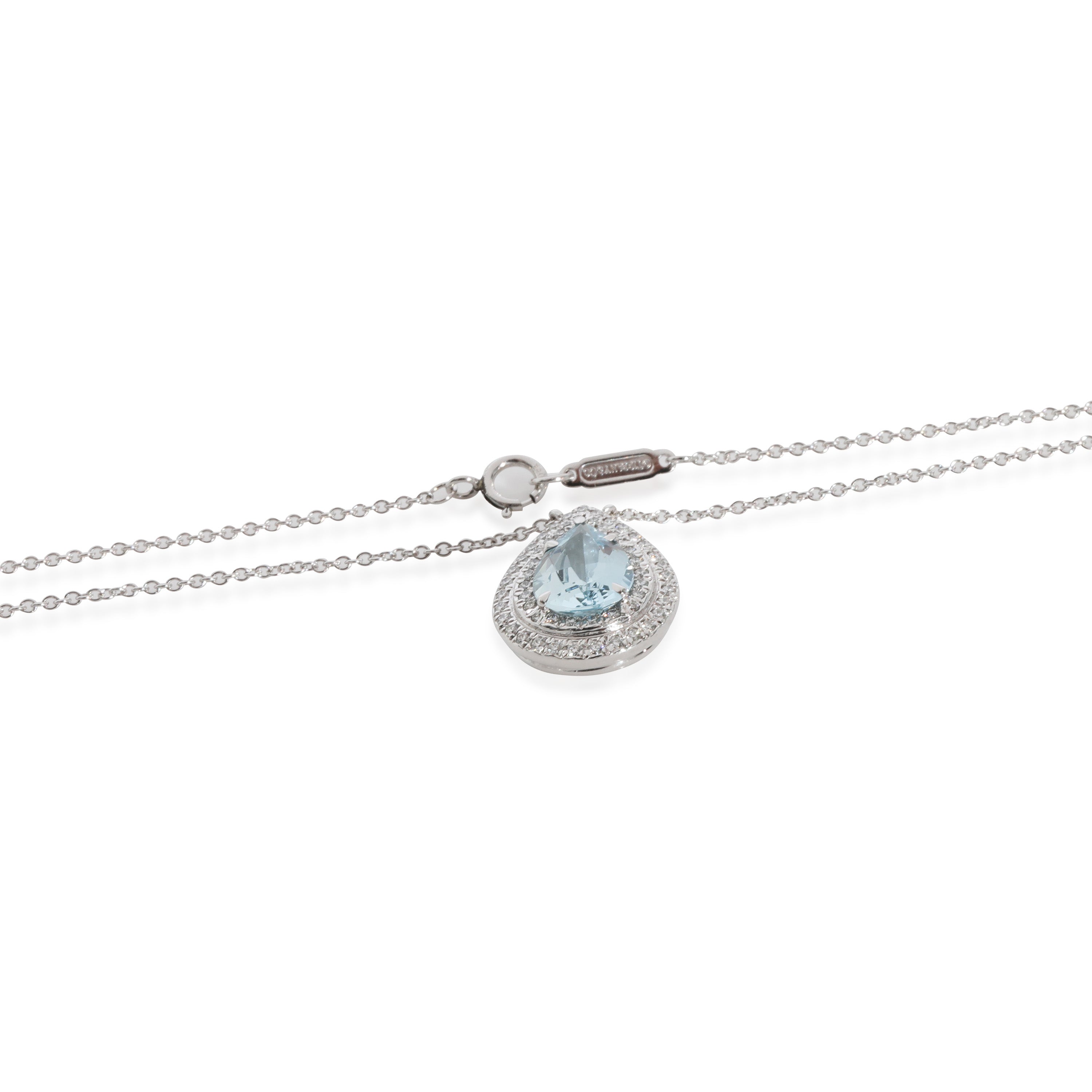 Tiffany & Co. Soleste Aquamarine Diamond Halo Pendant in Platinum 0.19 CTW