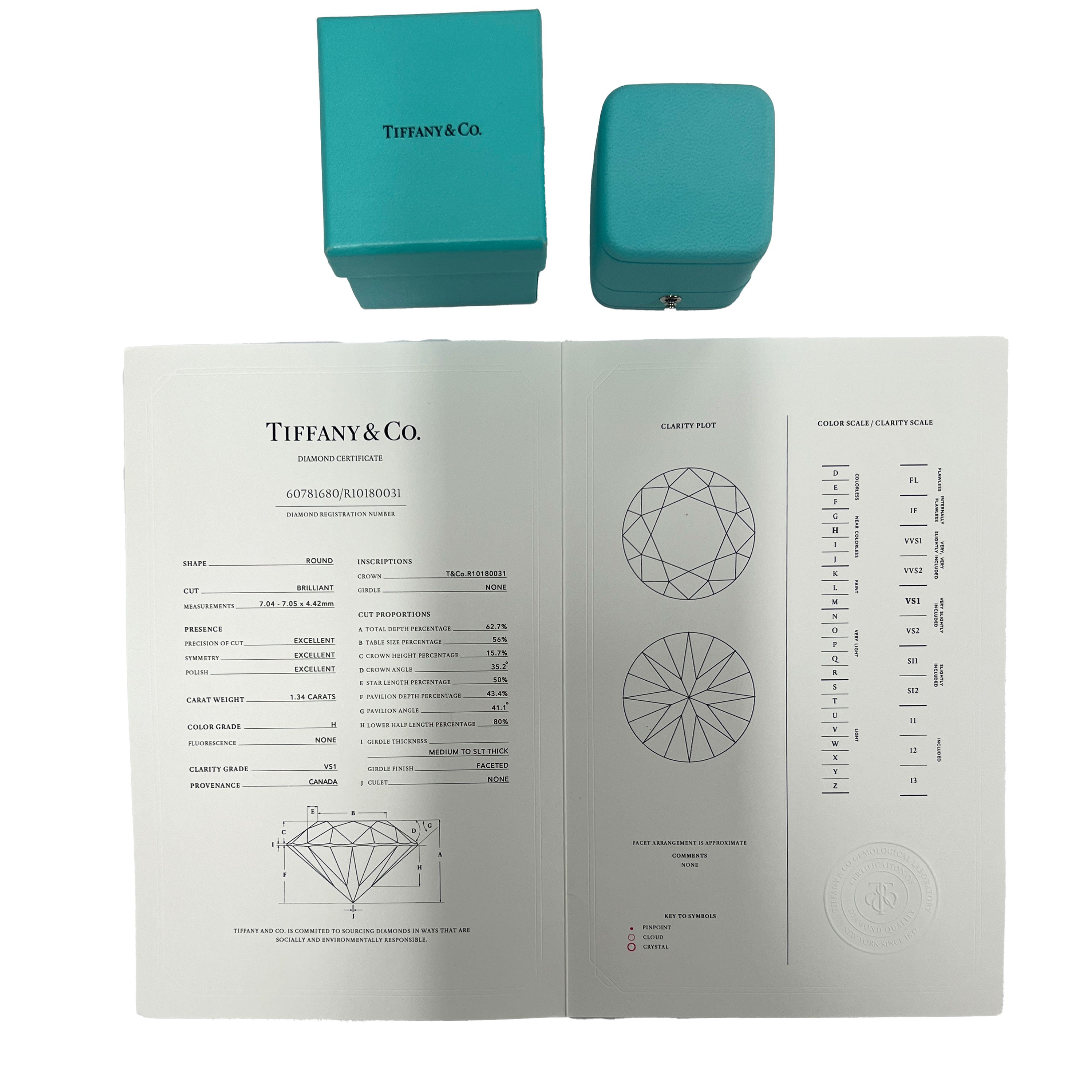 Tiffany & Co. Diamond Solitaire Engagement Ring in Platinum H VS1 1.34 CTW