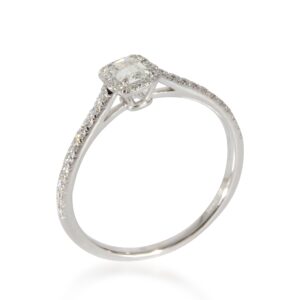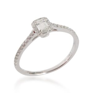 Tiffany & Co. looks to the sun to inspire the Soleste collection. Every design from this edit has a center stone framed with a single or double row of sparkling white diamonds for a luminous display. Retails for 5400 USD. In excellent condition and recently polished. Ring size is 8.25. Comes with Tiffany Diamond Certificate; Comes with papers. (Out of stock)