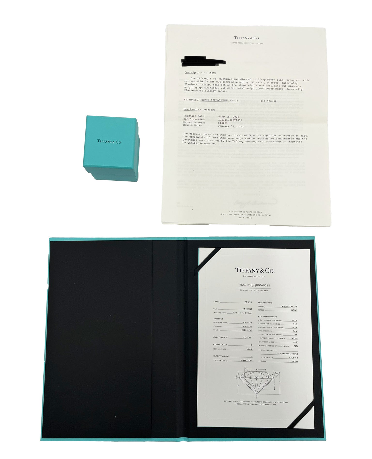| Includes: Box;Valuation Report;Tiffany Diamond Certificate | Main Stone Shape: Round Brilliant |