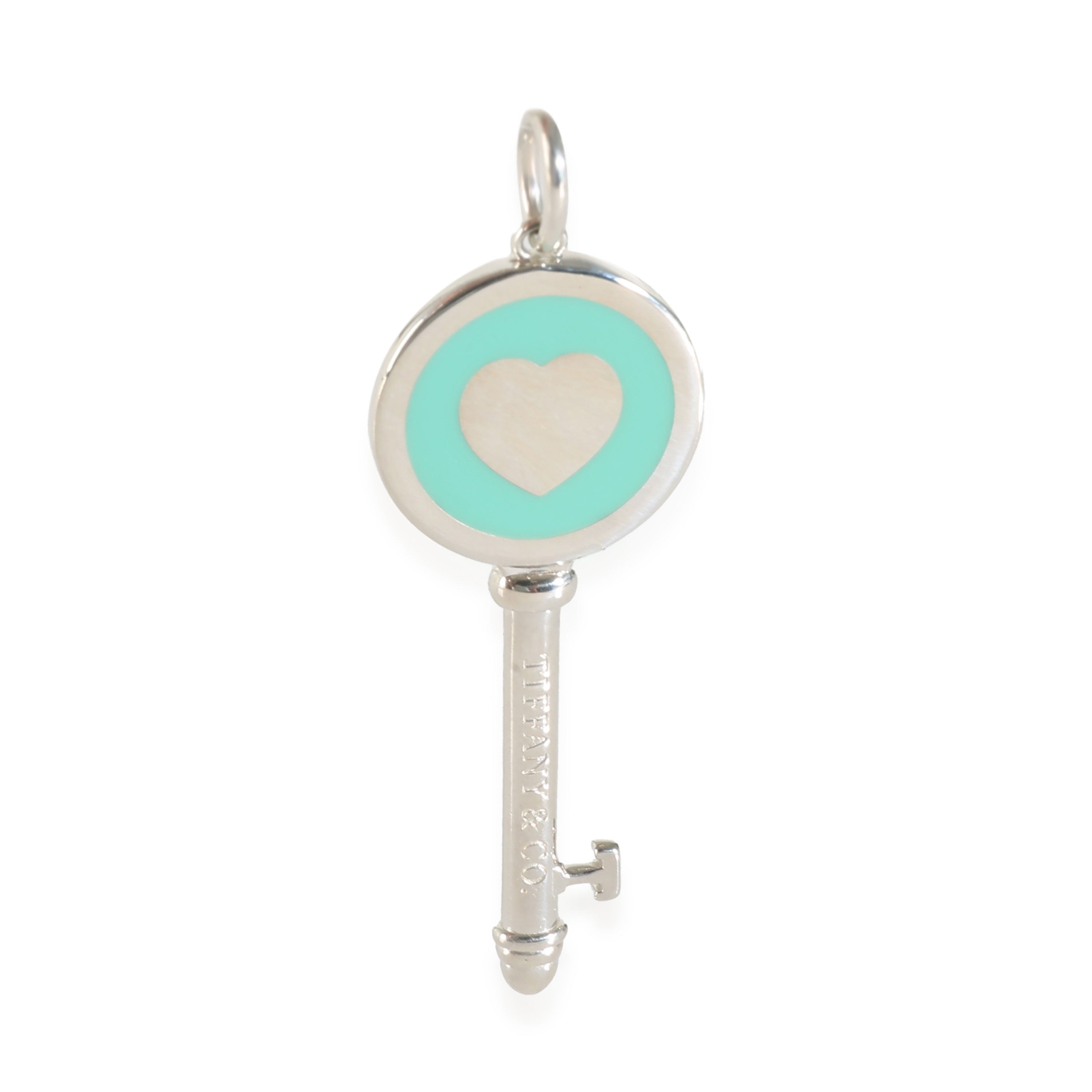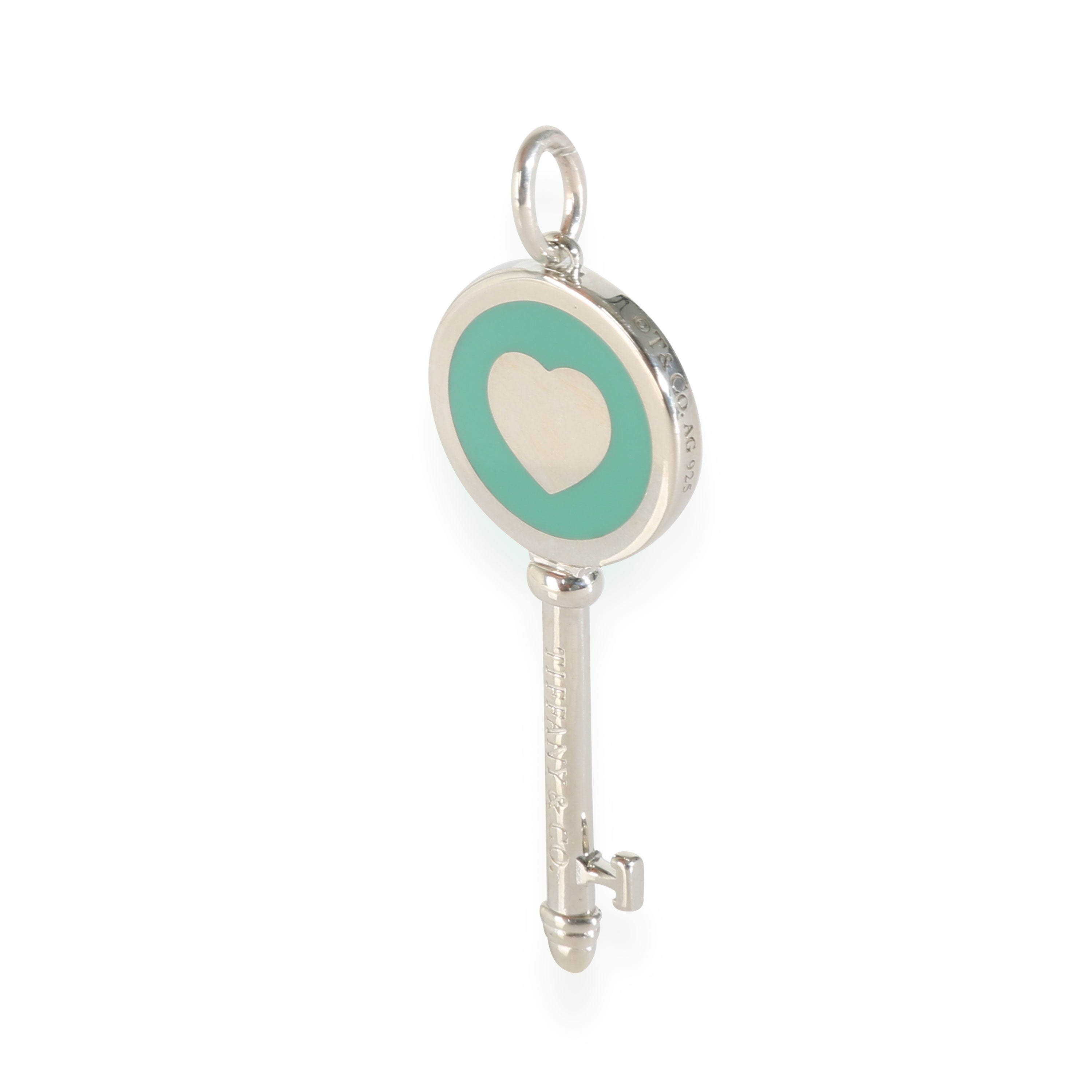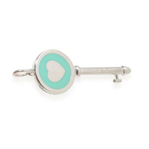 Blue Enamel Heart Key Pendant in Sterling Silver