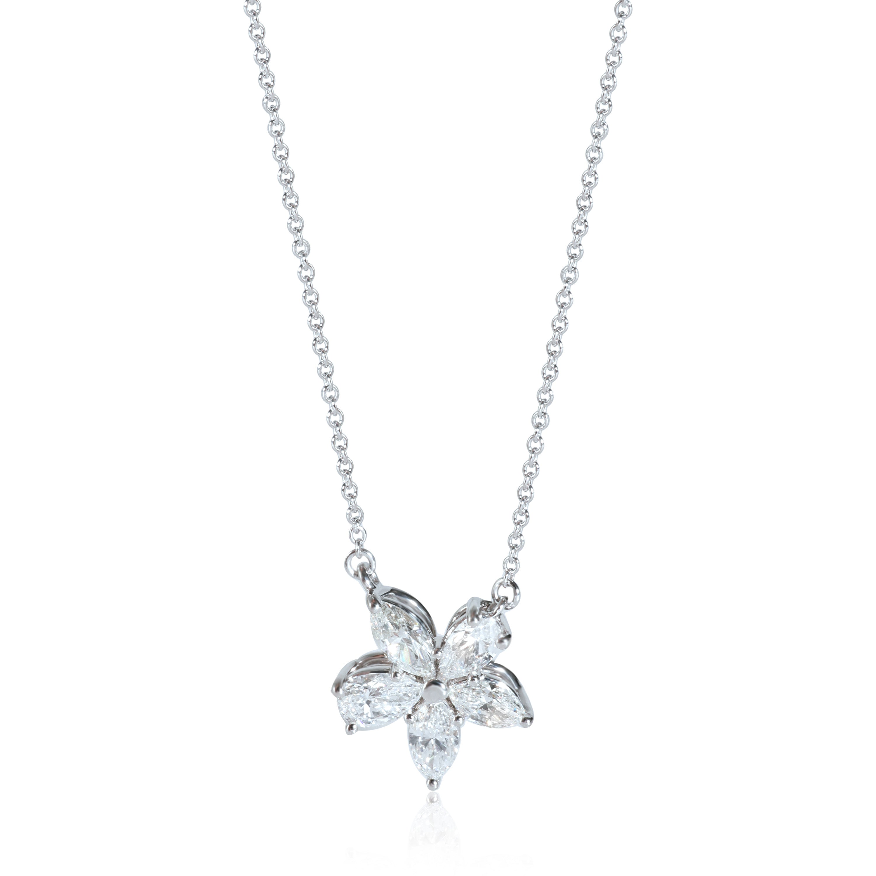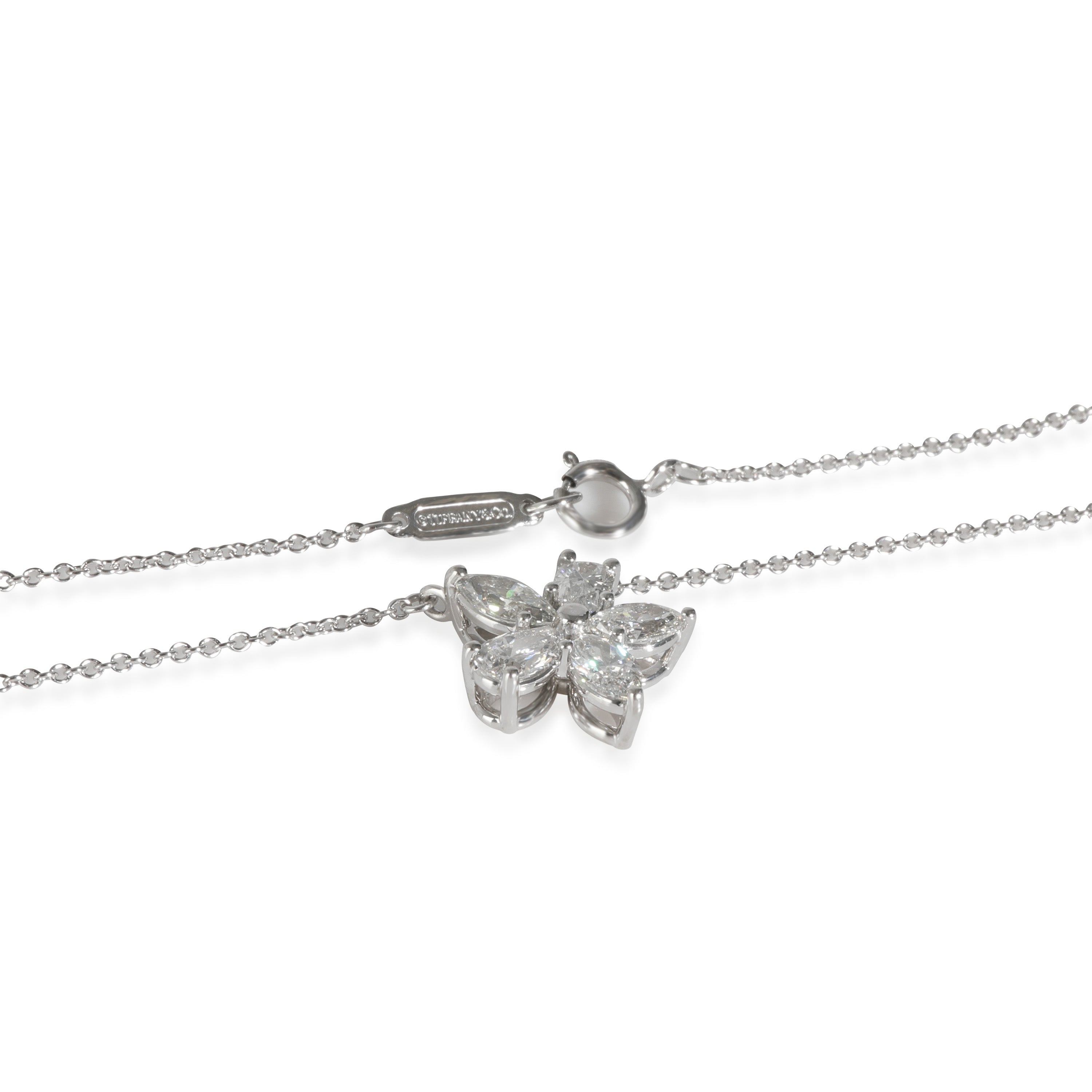 An ode to the natural world, the Victoria collection by Tiffany & Co. incorporates vines and floral motifs. Each design is encrusted with sparkling white diamonds. Retails for 15200 USD. In excellent condition and recently polished. 16 inches in length. Comes with Box; (Out of stock)