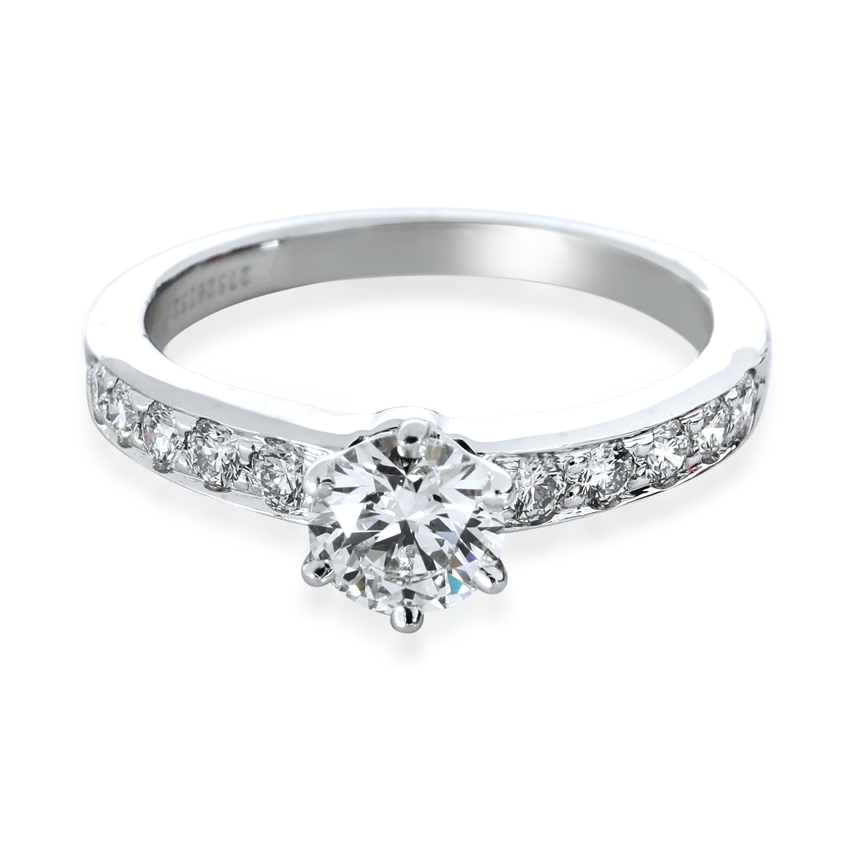 Retails for 7500 USD. In excellent condition and recently polished. Ring size is 5. Comes with Box;Tiffany Diamond Certificate. (Out of stock)