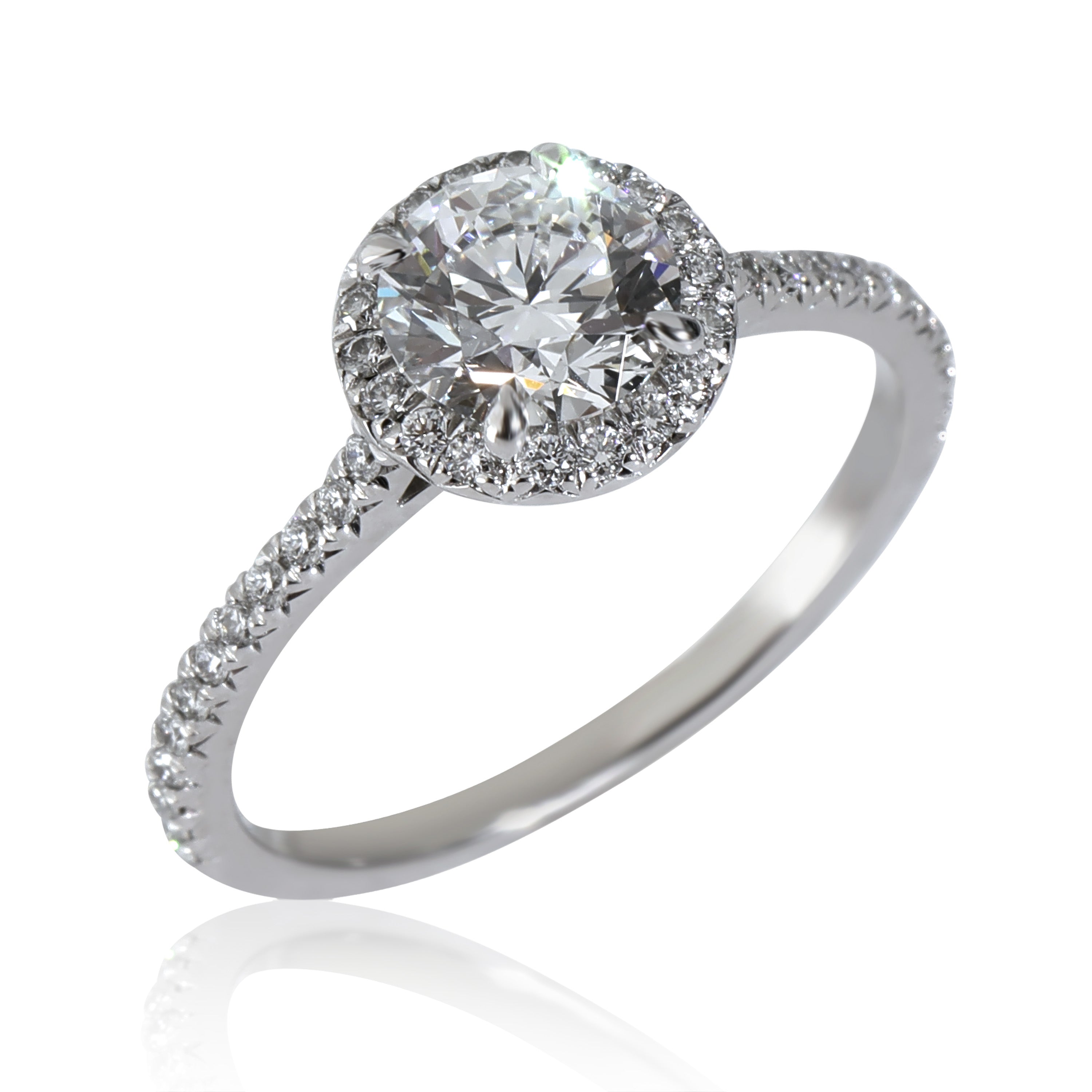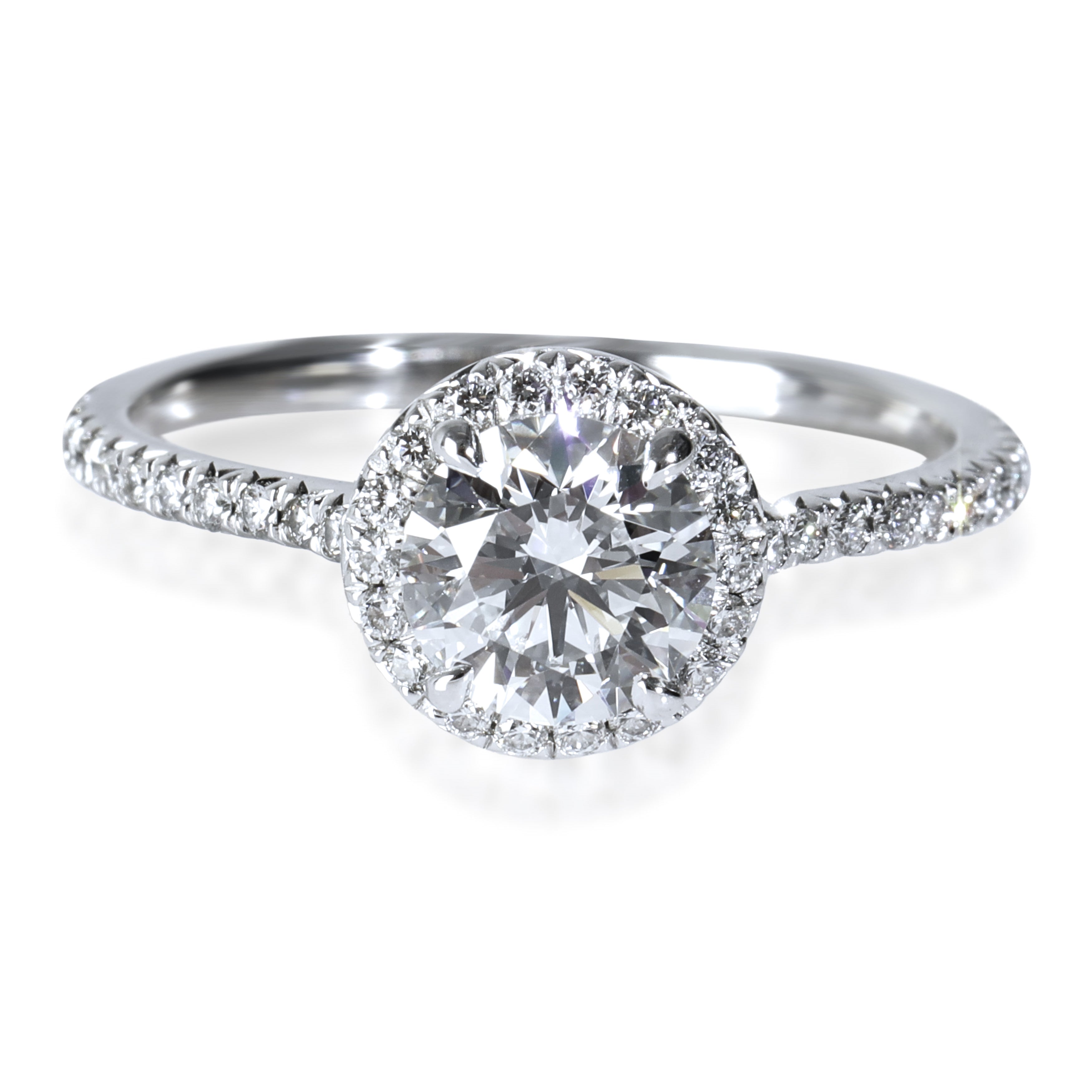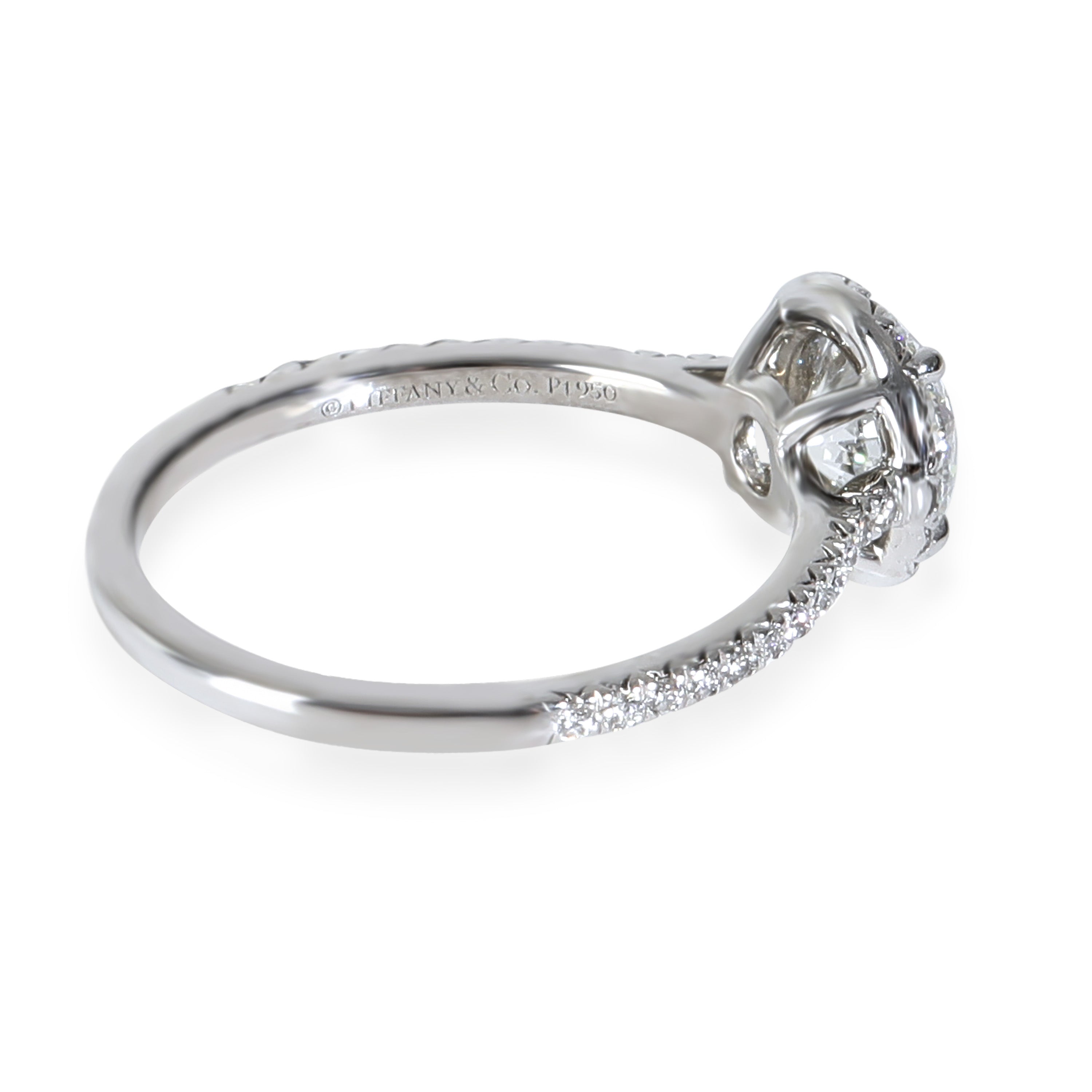 Tiffany & Co. looks to the sun to inspire the Soleste collection. Every design from this edit has a center stone framed with a single or double row of sparkling white diamonds for a luminous display. Retails for 20000 USD. In excellent condition and recently polished. Ring size is 5.5. Comes with Box;Tiffany Diamond Certificate; (Out of stock)