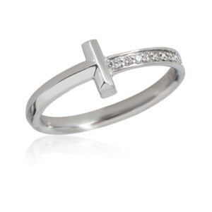 Inspired by the ‘T’ motif that Tiffany has been incorporating since the ’80s, the T collection is both striking and classic at once. Retails for 2550 USD. In excellent condition and recently polished. Ring size is 8.5. Comes with Box; (Out of stock)