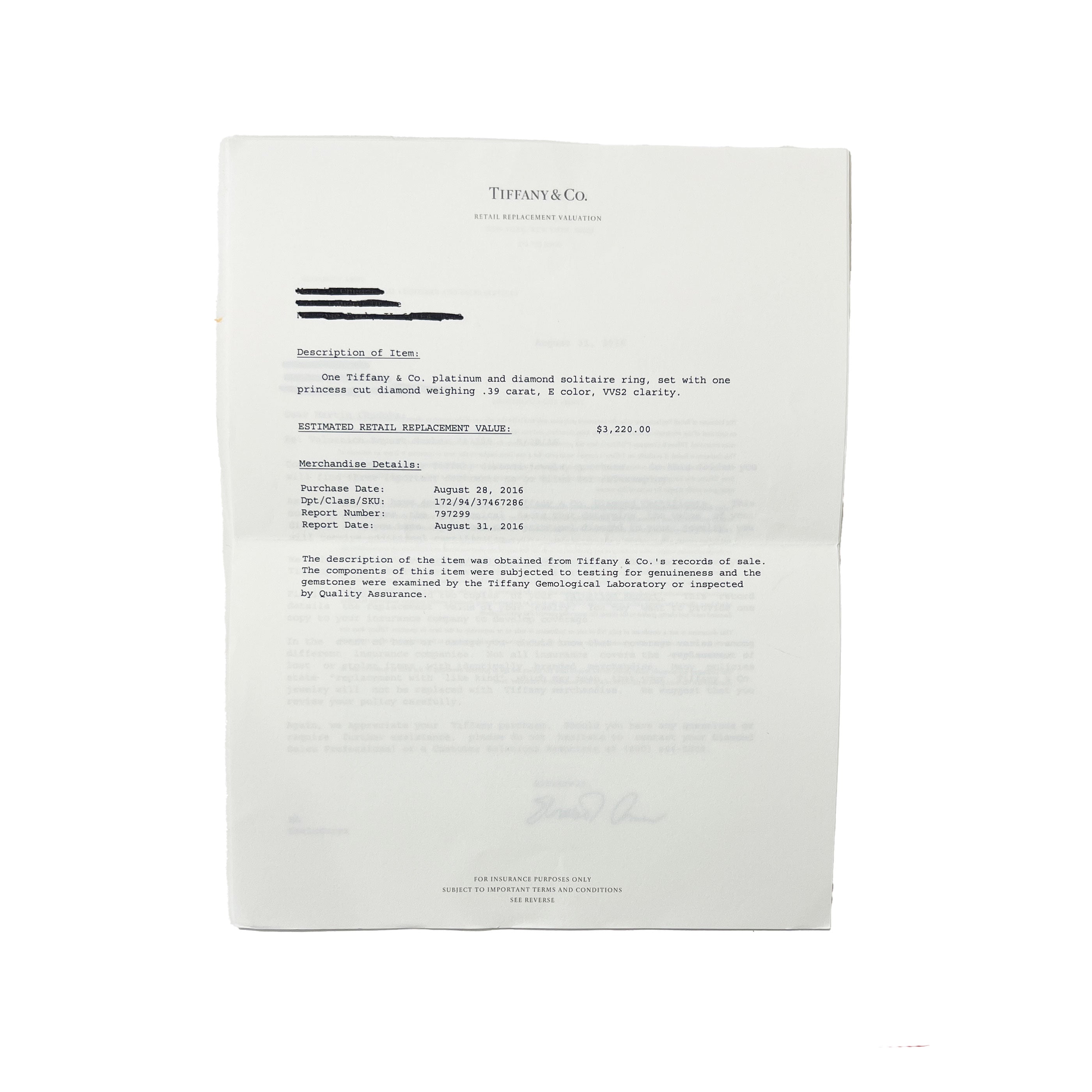 Retails for 3220 USD. In excellent condition and recently polished. Ring size is 6. Comes with Box;Valuation Report;Tiffany Diamond Certificate; (Out of stock)
