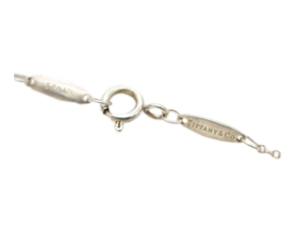 Italian jewelry designer Elsa Peretti has been creating silver jewelry for Tiffany since 1974. Peretti’s designs take on a youth-inspired aesthetic, with classic and modern pieces to be treasured for years to come. Retails for 410 USD. In excellent condition. 18 in in length. Comes with Box and Pouch. (Out of stock)