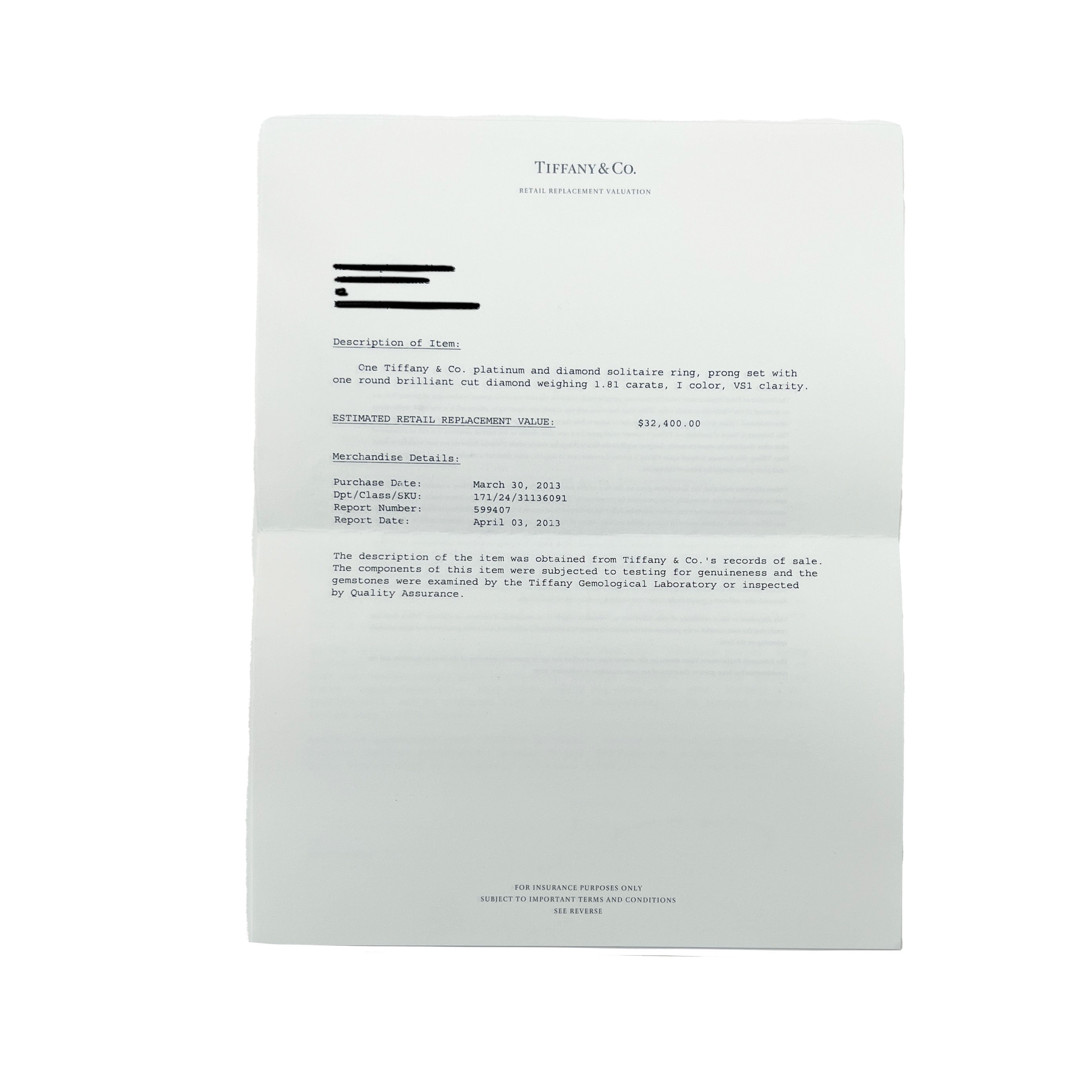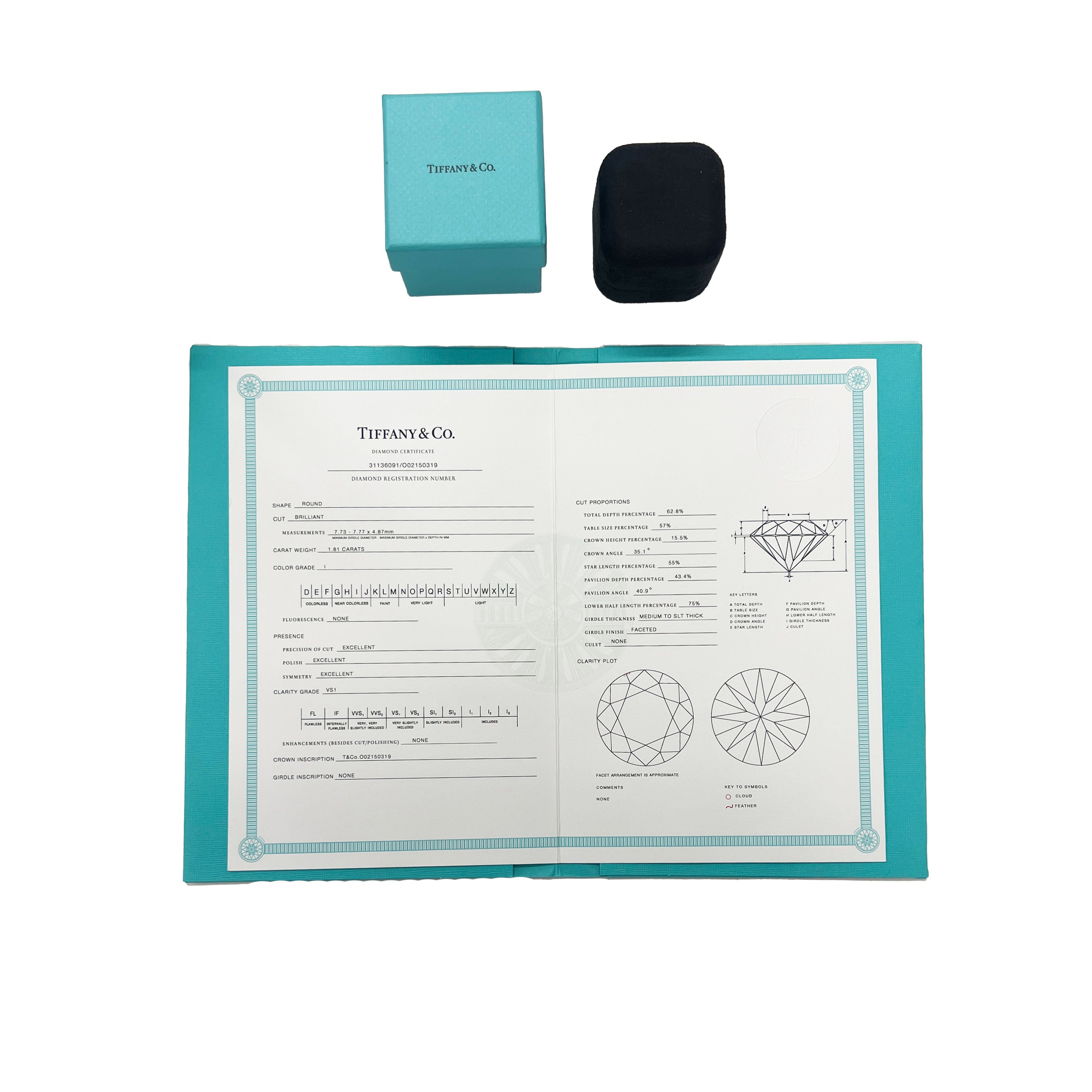 | Includes: Box;Valuation Report;Tiffany Diamond Certificate | Main Stone Shape: Round Brilliant |